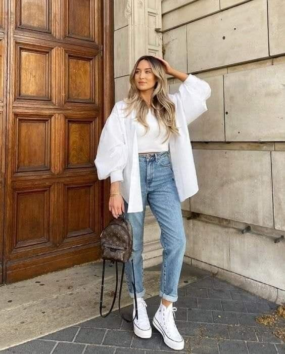Combine um blazer casual com uma calça jeans ou uma saia para um visual que mistura sofisticação com conforto. Os tênis adicionam um toque descomplicado, tornando o look ideal para ambientes de trabalho mais descontraídos ou encontros sociais. O blazer oferece um toque de elegância, enquanto os tênis garantem que você esteja confortável e na moda.