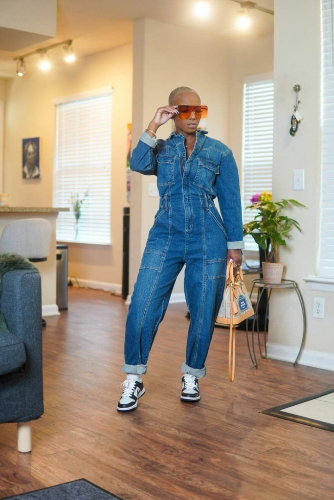Combine um macacão moderno com tênis para um visual prático e estiloso. O macacão oferece um toque de sofisticação enquanto o tênis garante conforto, resultando em uma combinação perfeita para eventos informais ou passeios urbanos. Complete o look com acessórios minimalistas para um toque final.